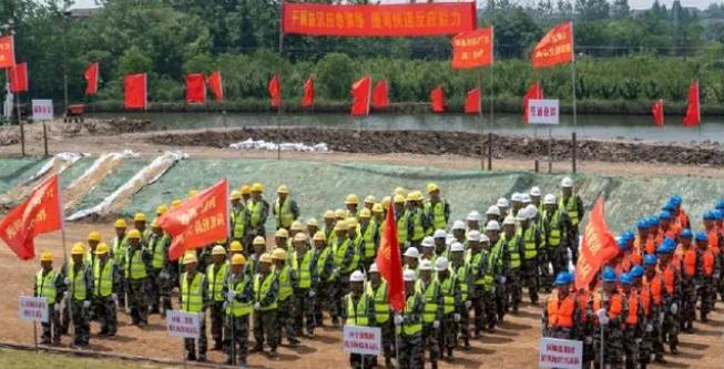 為深入貫徹落實中央關于“兩個堅持、三個轉變”防災減災救災新理念。堅持“安全第一,常備不懈,以防為主,全力搶險”的防汛工作方針,進一步強化應急預案保障措施的落實,全面提升防汛應急搶險救援實戰能力,保障人民群眾生命財產安全。江寧區以區委書記林濤為總指揮,區人民政府副區長張道平為演練現場指揮,組織演練成員單位于5月13日上午10:00在祿口街道溧水河東莊段開展2023年防汛搶險綜合實戰演練。