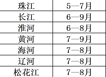 全國各大江河流域汛期